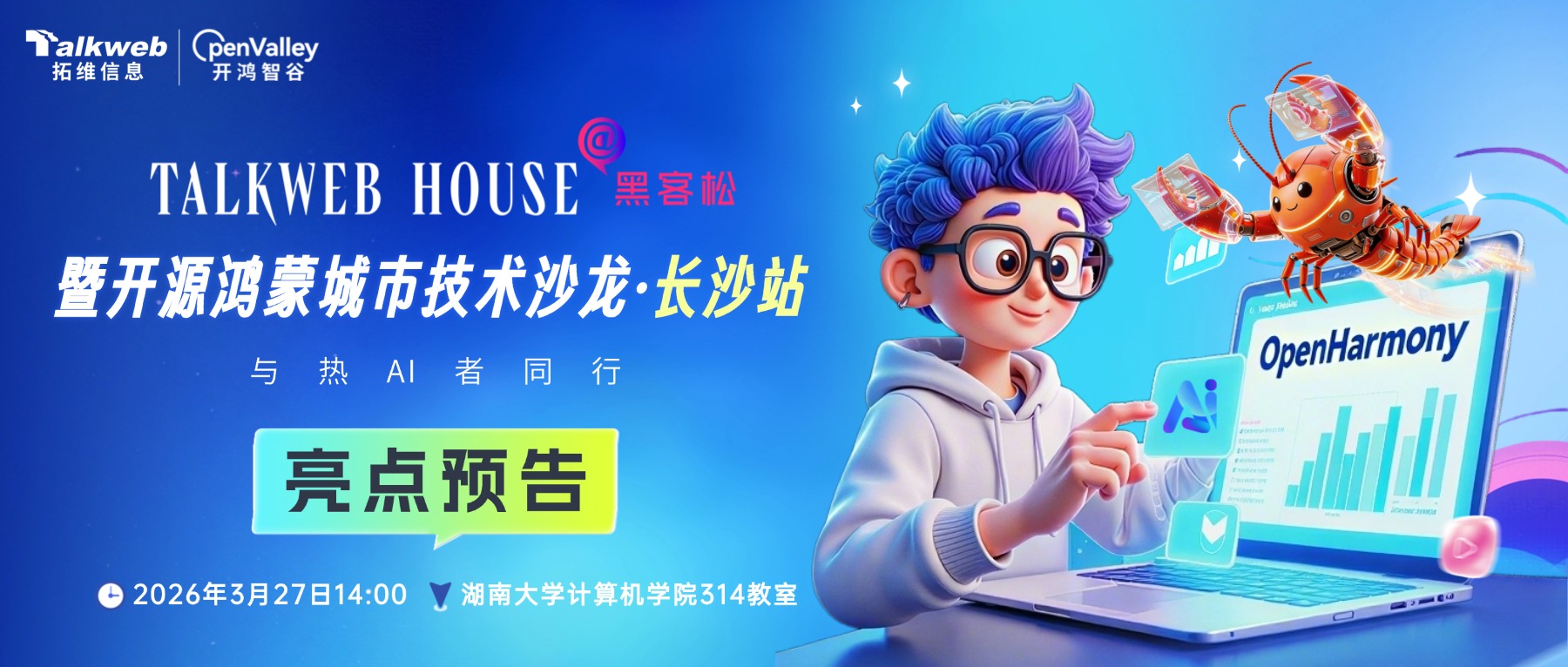等你来战!Talkweb House@黑客松暨开源鸿蒙城市技术沙龙2026 • 长沙站报名火热进行中!
